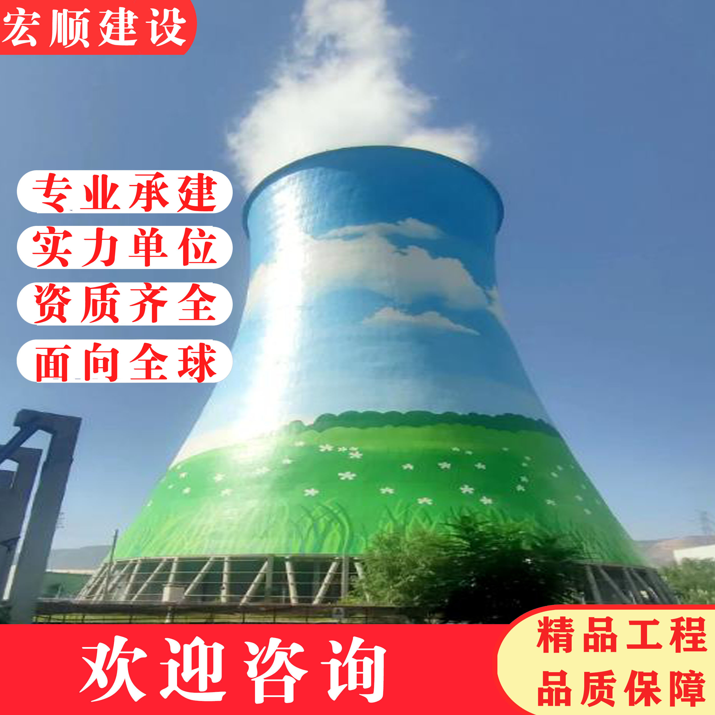 煙囪美化寫字(筒倉彩繪)的外壁美化施工